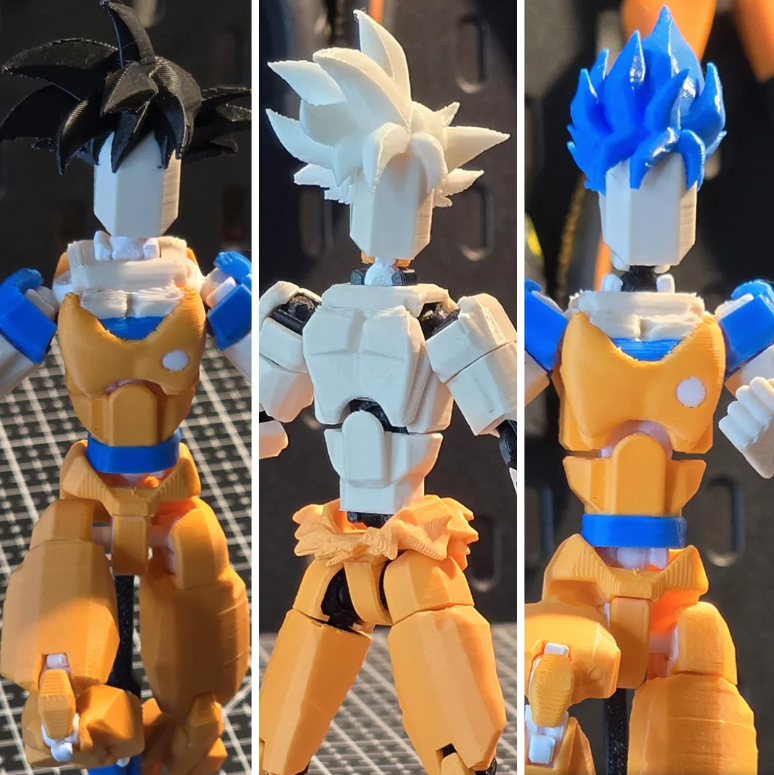 🔁 3 cabezas intercambiables: Adulto, Super Saiyan y Super Saiyan Blue